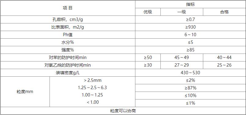 椰殼防護(hù)活性炭技術(shù)指標(biāo)應(yīng)符合下表要求: