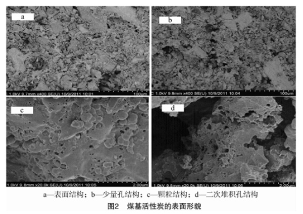 圖2為煤質(zhì)活性炭的表面形貌。